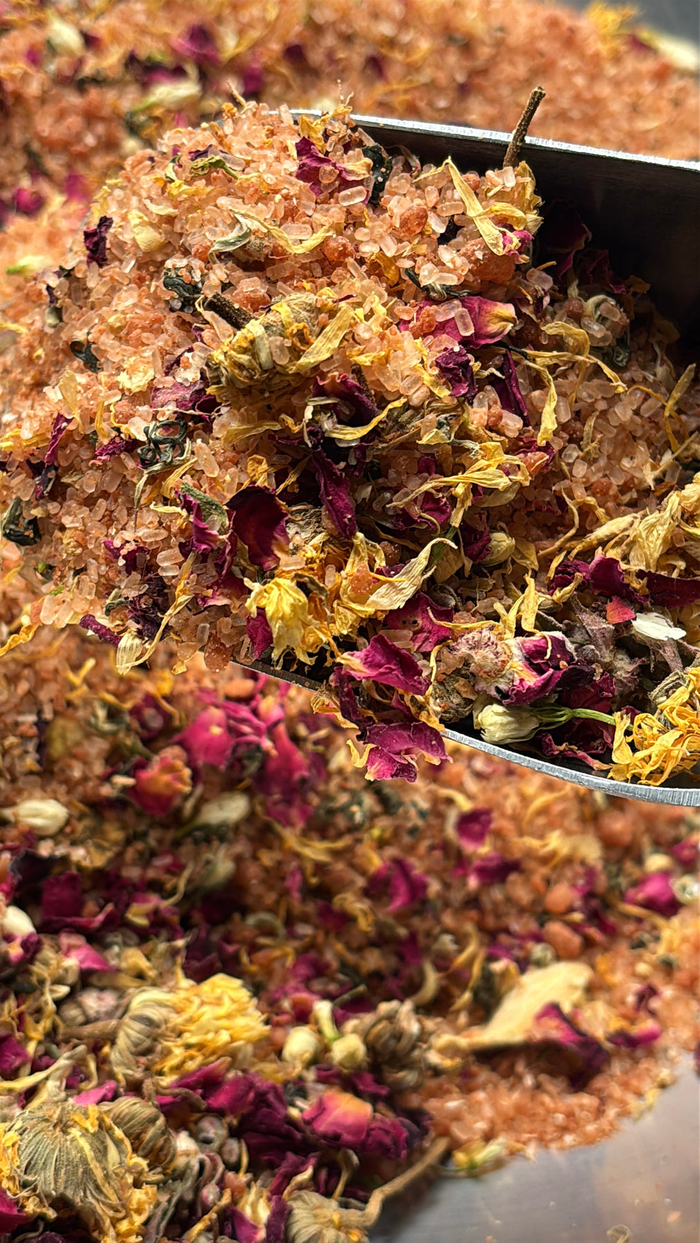 Epsom Salt (magnesium & sulfate), Dead Sea Salt, Himalayan Salt, Sodium Chloride (Salt), Sodium Cocoyl Isethionate (creamy coconut surfactant), Pink French Clay, Allantoin, Rosehip Oil, Rosehip Botanical Extract, Colloidal Oatmeal, Lavender Essential Oil, Botanical Blend (Ginger, Green Tea Leaves, Jasmine Flower, Dried Rose Petals & Buds).