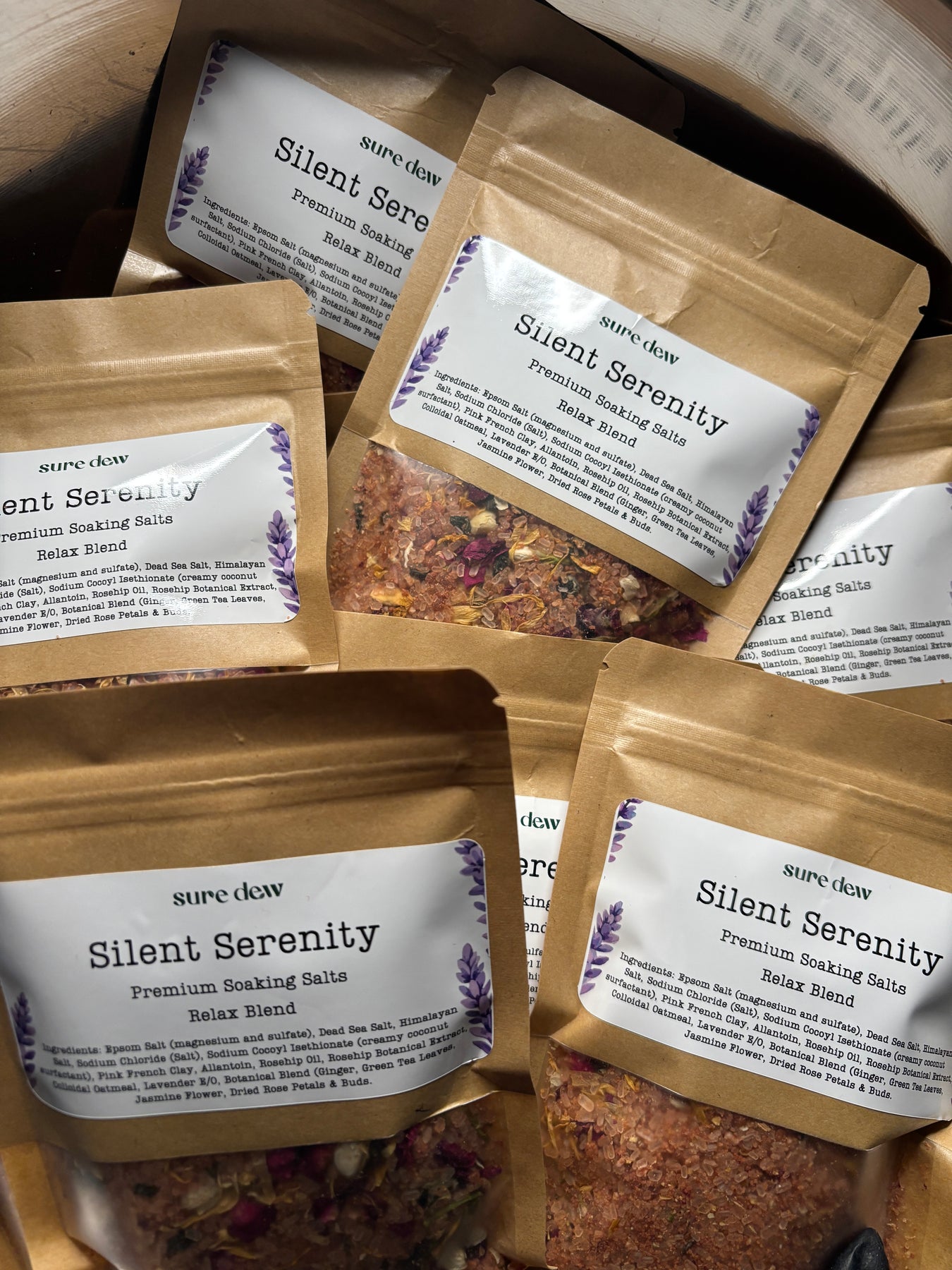 Immerse yourself in a deeply calming bath ritual designed to quiet the noise of the day and guide your mind back to serenity. Silent Serenity is handcrafted in small batches with mineral-rich salts, soothing botanicals, and skin-nourishing extracts that help your body unwind while bringing your senses into a gentle state of relaxation.